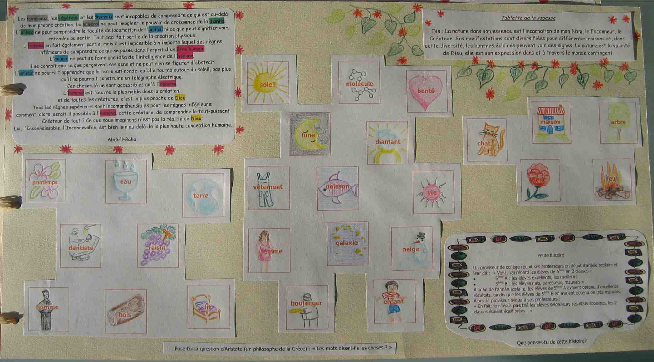 dessins pour enfant et adolescent expliquant les différents mondes de la