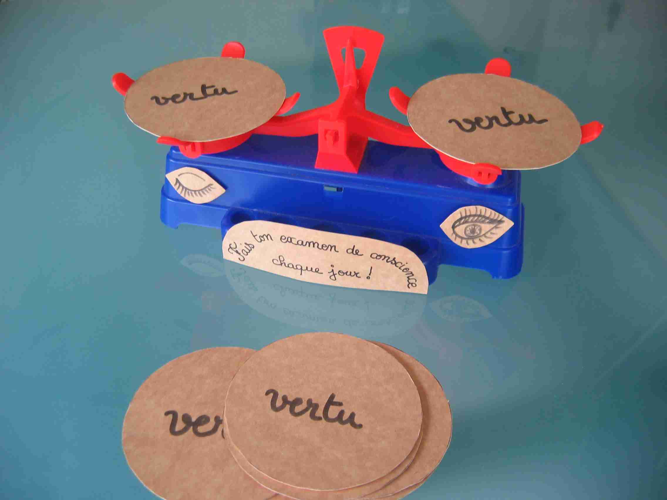Apprentissage à l'examen de conscience grâce à la balance des vertus :