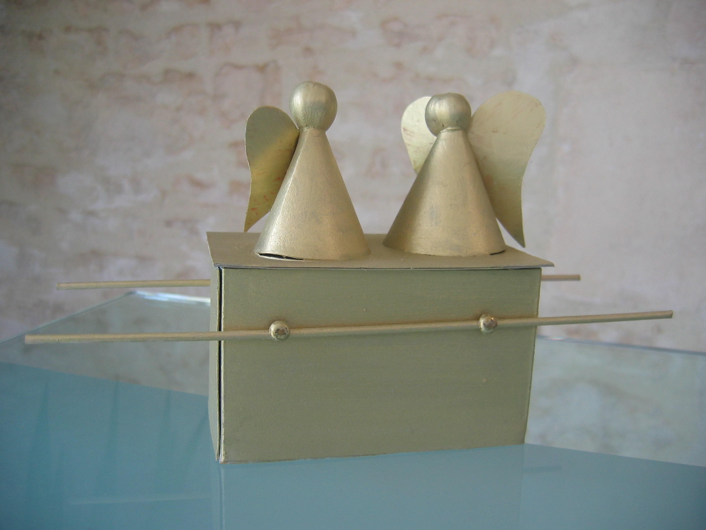 Boite et anges en carton peints à la
